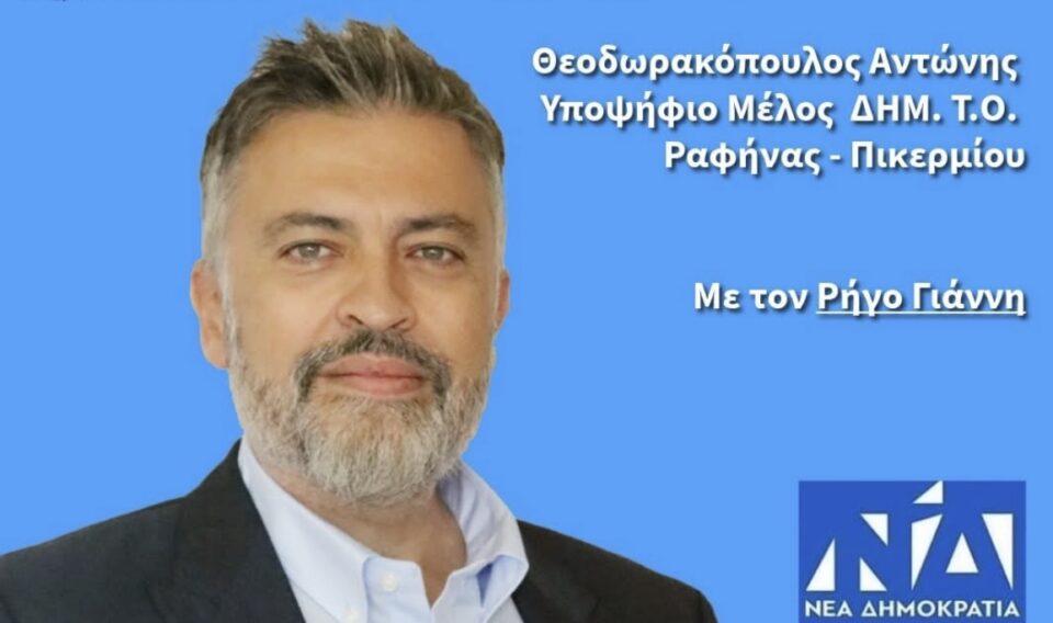 Με ενότητα, με ήθος και με καθαρή πρόθεση προσφοράς, ο Αντώνης Θεοδωρακόπουλος δηλώνει έτοιμος να συμβάλει στην ουσιαστική επανεκκίνηση της ΔΗΜ.Τ.Ο. Ραφήνας–Πικερμίου, ώστε να αποκτήσει ξανά τον ρόλο που της αξίζει μέσα στην κοινωνία.