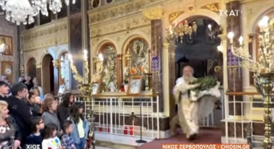 Την ώρα που ψάλλεται το «Ανάστα ο Θεός», ο ιερέας αρχίζει να κινείται ταχύτατα ανάμεσα στους πιστούς. Δεν περπατά. Δεν απλώς ευλογεί. Τρέχει. Πετά. Και σκορπά δάφνες μέσα στον ναό σημάδι νίκης, χαράς και λύτρωσης. Οι πιστοί χτυπούν τα στασίδια, ο ναός σειέται από ήχο και ρυθμό. Είναι μια τελετουργία που δεν παρακολουθείς απλώς τη ζεις.