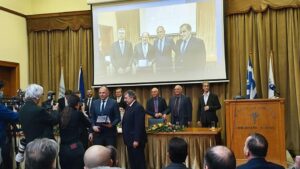 Στην εξαιρετική εκδήλωση που διοργάνωσε το ΕΒΕΠ για την κοπή της Πρωτοχρονιάτικης Βασιλόπιτας όπου βραβεύτηκαν ελληνικές καινοτόμες επιχειρήσεις που “γεννήθηκαν” στον Πειραιά και μεγαλούργησαν σε παγκόσμιο πια επίπεδο … Τη βράβευση έκαναν κορυφαίοι Υπουργοί της Κυβέρνησης! Τα συγχαρητήρια όμως ανήκουν στον Πρόεδρο του ΕΒΕΠ κ. Vassilis Korkidis για την άψογη διοργάνωση!!