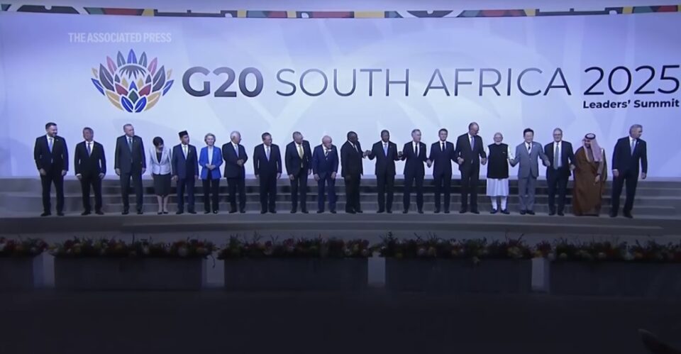 Η σύνοδος κορυφής του G20 στο Johannesburg της Νότιας Αφρικής (22–23 Νοεμβρίου 2025) κατέληξε σε μια ιστορική στιγμή για τη διεθνή διπλωματία: οι ηγέτες των είκοσι μεγαλύτερων οικονομιών του πλανήτη υιοθέτησαν κοινή δήλωση χωρίς τη συναίνεση και ουσιαστικά χωρίς τη συμμετοχή των Ηνωμένων Πολιτειών.