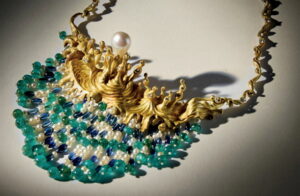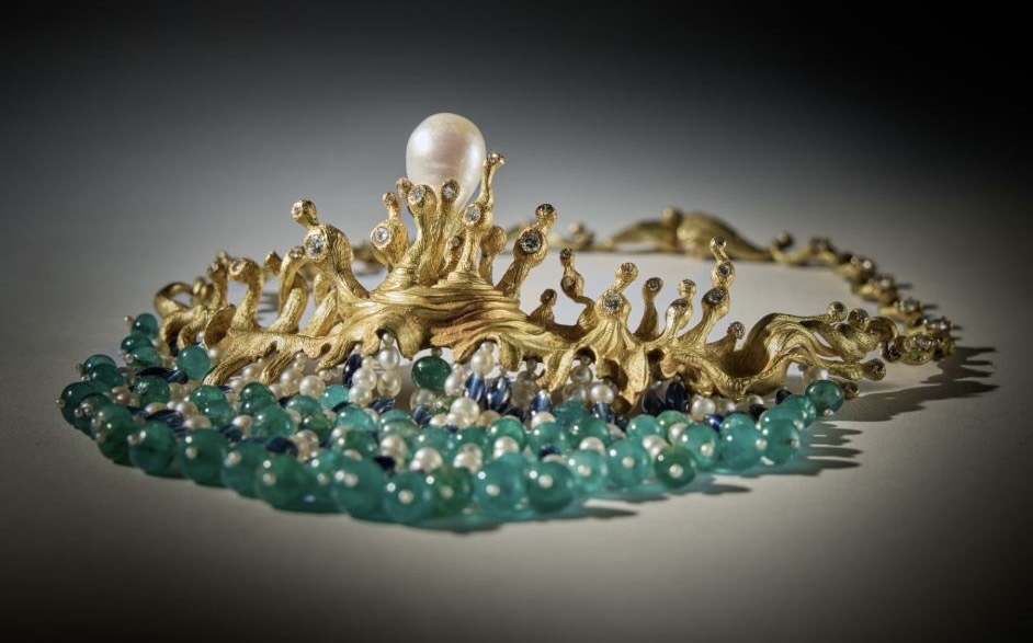 Η «θαλάσσια δίνη» του κολιέ παραπέμπει στα κύματα του ασυνείδητου, στα ζωντανά στοιχεία της φύσης, αλλά και στο γυναικείο σώμα ως φορέα της δημιουργικής δύναμης.
