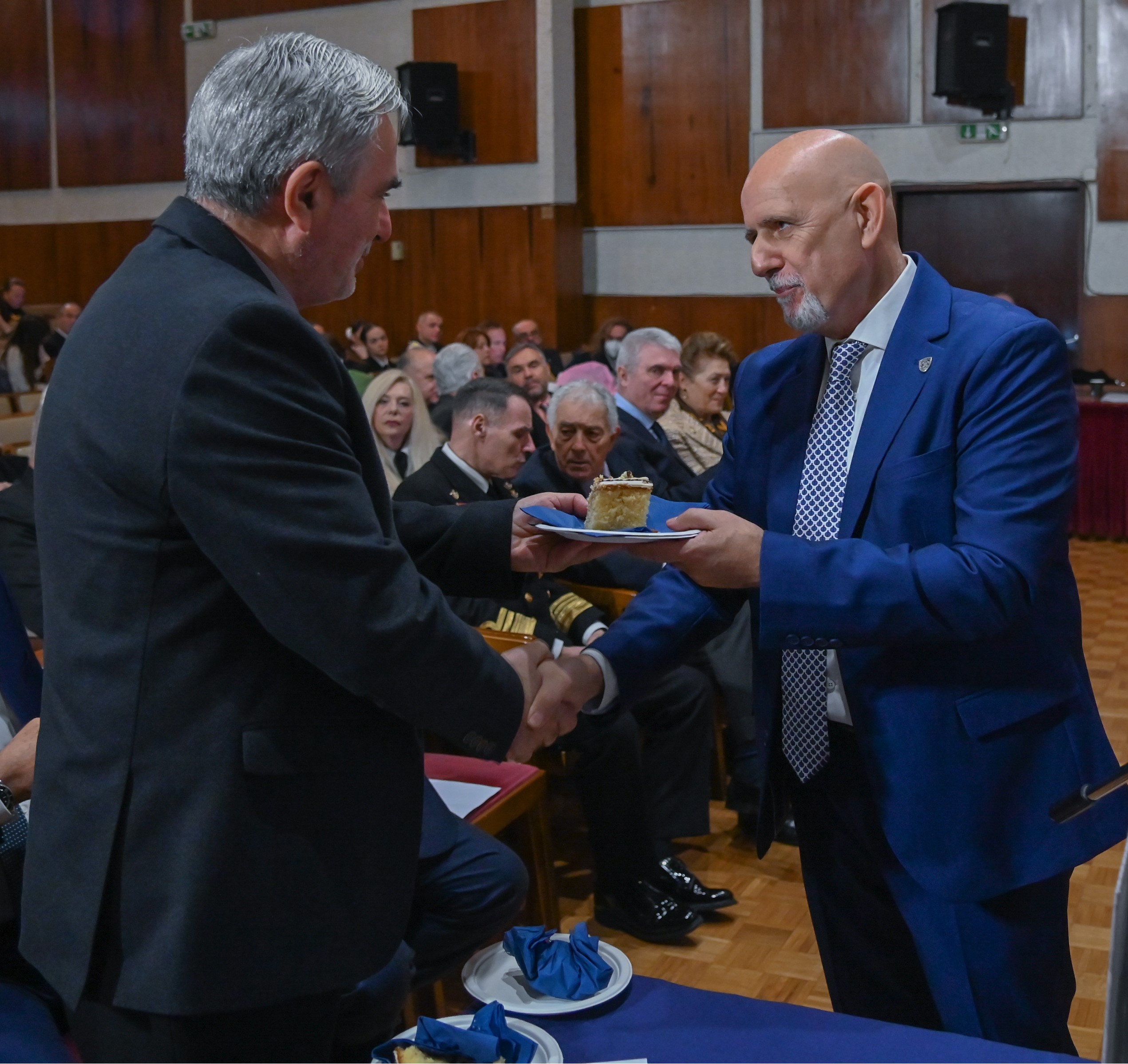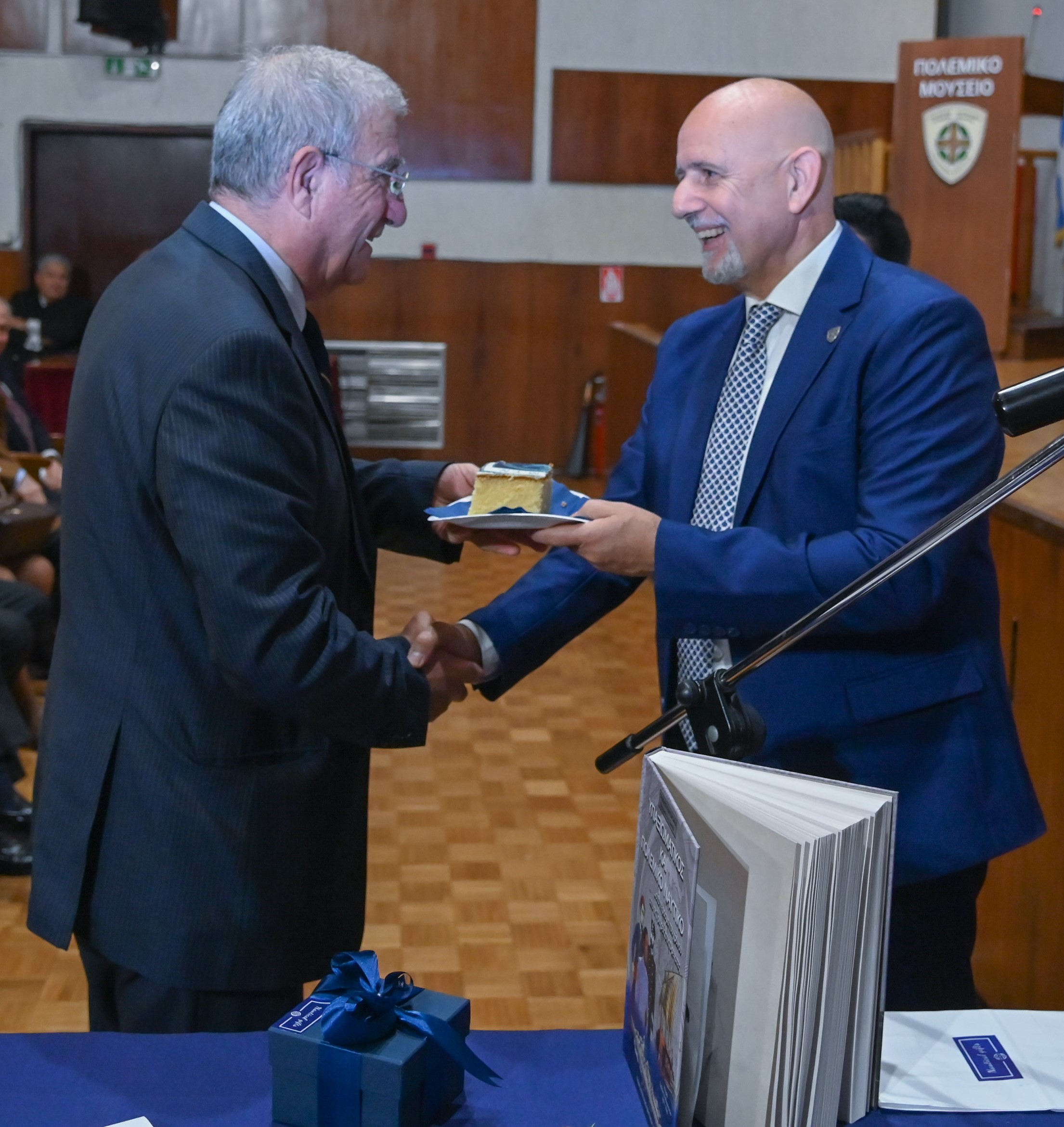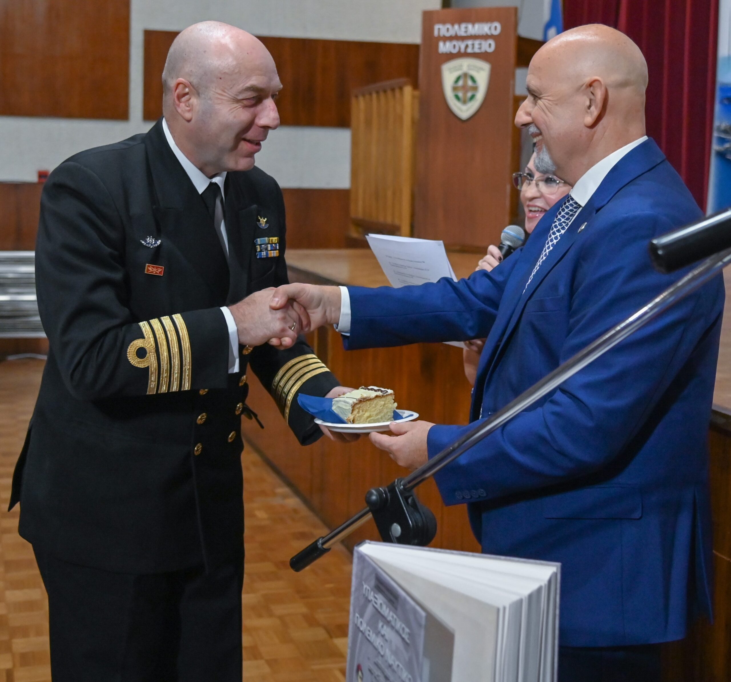 οι επίτιμοι Αρχηγοί ΓΕΝ: Ναύαρχος Στυλιανός Πετράκης ΠΝ και Αντιναύαρχος Νικόλαος Τσούνης ΠΝ,
