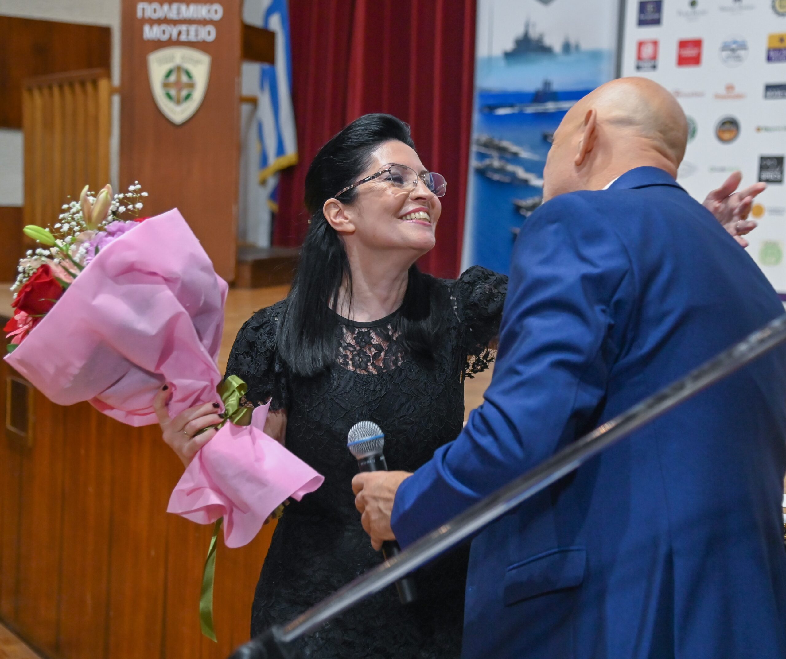 Η Ανθυποπλοίαρχος (Ε) Ελένη Αντωνακάκη ΠΝ, Αγιογράφος, το βραβείο της οποίας παρέδωσε ο Υποναύαρχος ε.α. και πρώην Διοικητής ΣΜΥΝ Αντώνιος Ρίζος ΠΝ,