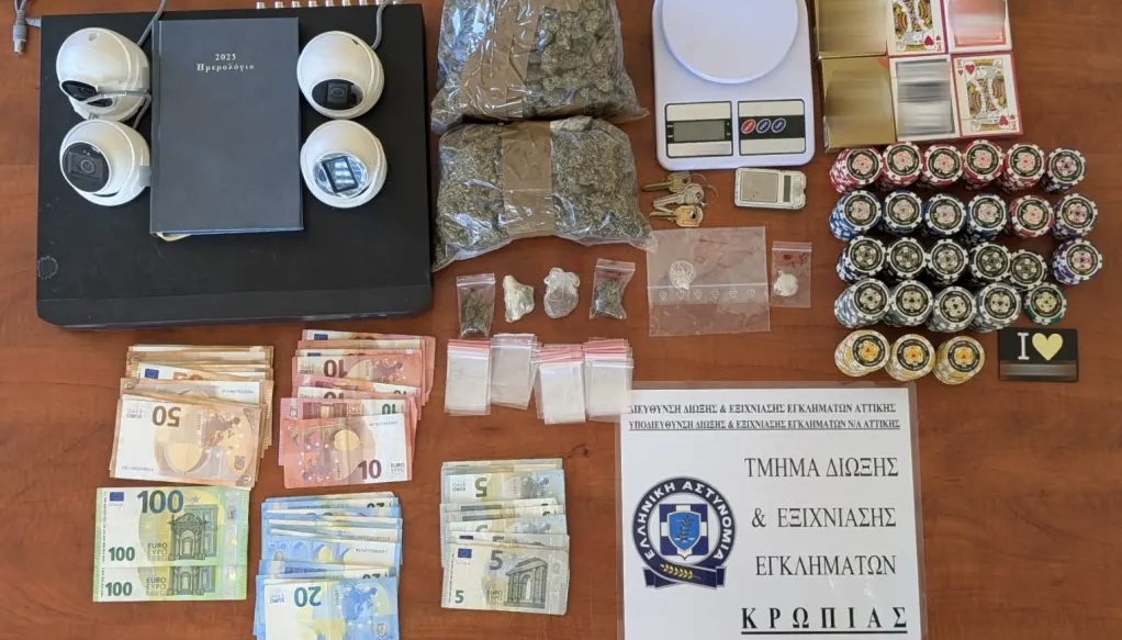 Ειδικότερα, στο πλαίσιο πληροφοριών αστυνομικών του Τμήματος Δίωξης και Εξιχνίασης Εγκλημάτων Κρωπίας, οργανώθηκε αστυνομική επιχείρηση εντός καταστήματος του Κορωπίου όπου εντοπίστηκαν -9- άτομα να συμμετέχουν σε τυχερό παίγνιο με χρηματικό έπαθλο, ενώ κατασχέθηκαν μάρκες, τσόχα καθώς και το χρηματικό ποσό των -1.340- ευρώ προερχόμενο από τη διεξαγωγή του τυχερού παιγνίου.