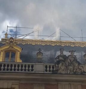 Πλάνα που κοινοποιήθηκαν στα μέσα κοινωνικής δικτύωσης έδειξαν ίχνη λευκού καπνού να αναδύονται από την οροφή του τεράστιου παλατιού του 17ου αιώνα που βρίσκεται στην ομώνυμη πόλη, περίπου 10 μίλια από την καρδιά της γαλλικής πρωτεύουσας