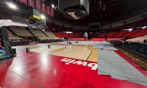 Το cube και τα νέα υπερσύγχρονα μηχανήματα στο γυμναστήριο του Ολυμπιακού έχουν υποστεί μεγάλες ζημιές, ενώ τεράστιες είναι οι συνέπειες για το παρκέ.