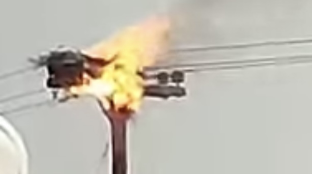 Στο βίντεο διακρίνονται καθαρά ηλεκτρικές εκκενώσεις, πιθανόν από βραχυκύκλωμα καλωδίου που είχε τυλιχθεί γύρω από την κολώνα.